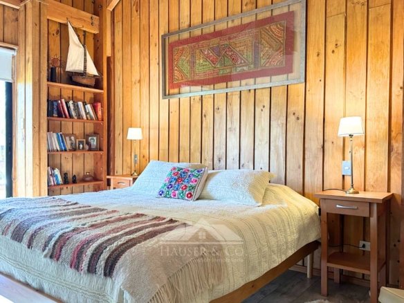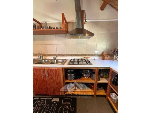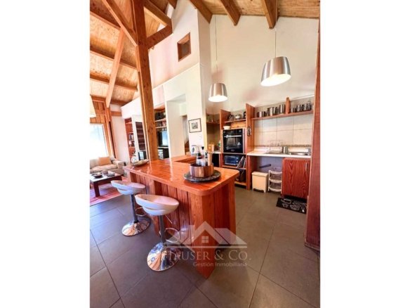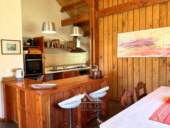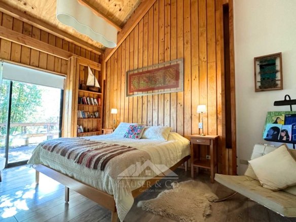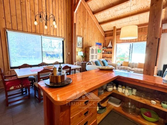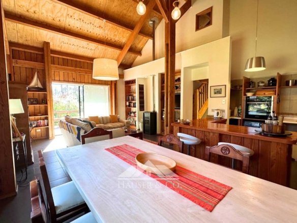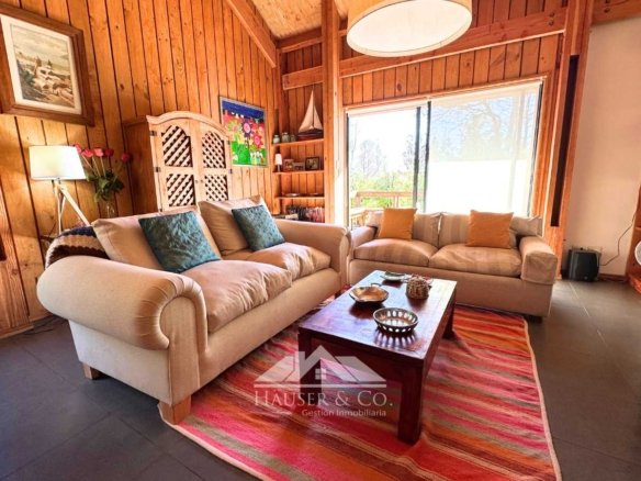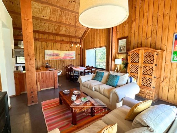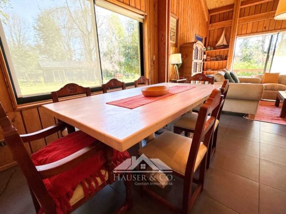 La casa está en el interior de un condominio cerrado y comparte terreno con una cabaña de los mismos dueños.