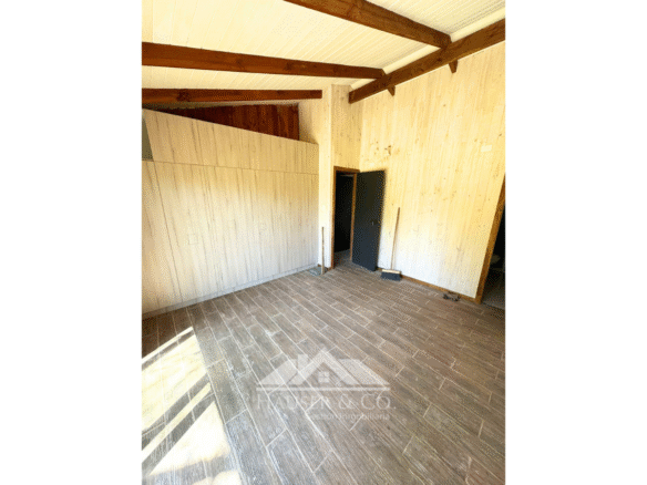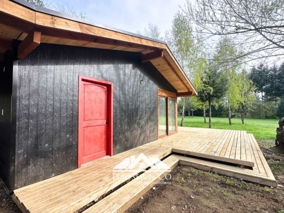 La casa posee un nivel y cuenta con 90 m2 construidos y está emplazada en un terreno de 5000 m2 que cuenta con vista al volcán