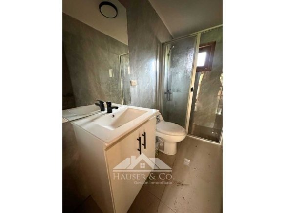 Posee una terraza con deck. Estacionamiento techado para dos autos.