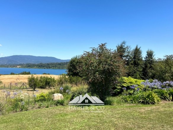 La casa posee 225 m2 construidos totales en dos niveles, y está emplazada en una hermosa parcela de 5.041,75 m2 con vista despejada al jardín y lago.