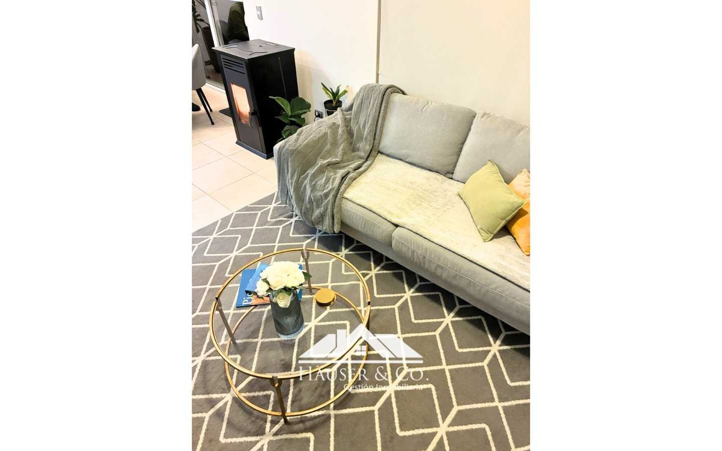 Porcelanato en espacios comunes y alformbra en dormitorios. Ventanas Termopanel.