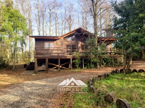 Práctica casa construida sobre pilotes. Diseñada para vivir con tranquilidad a minutos del centro de Villarrica.