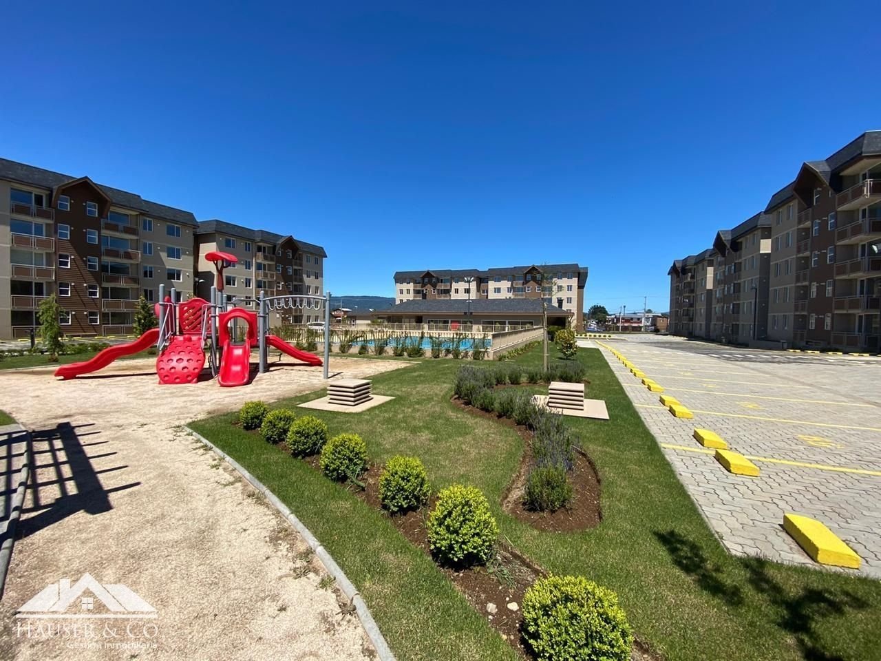 El Condominio posee juegos infantiles, piscina, gimnasio al aire libre, sala multiuso y dos quinchos de uso común.
