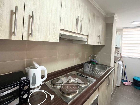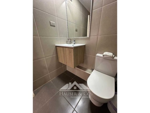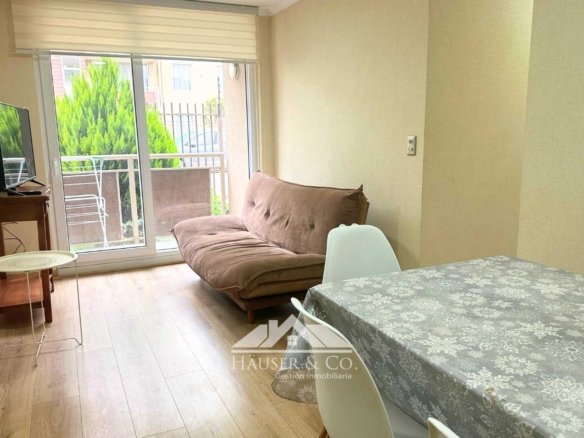 Posee un living comedor con salida al balcón, cocina americana amoblada y equipada con encimera y horno eléctrico empotrados, además de campana y calefont. Logia interior.