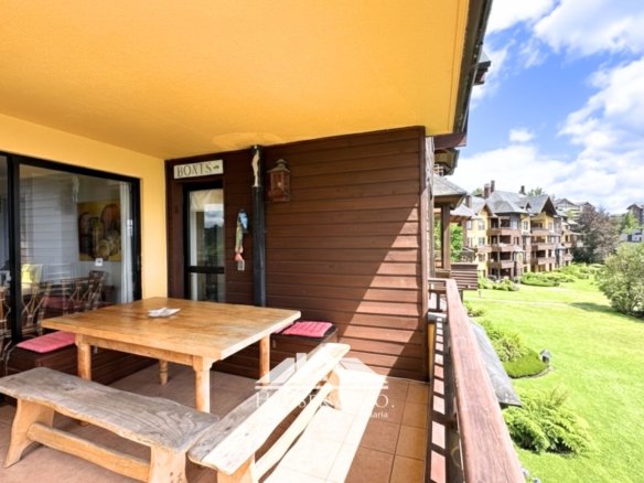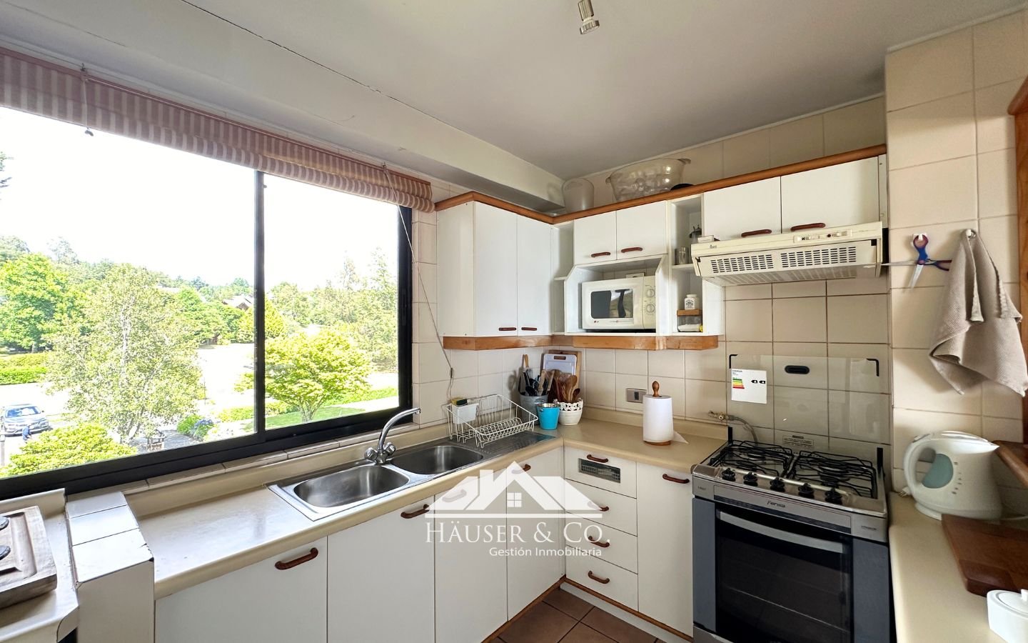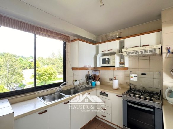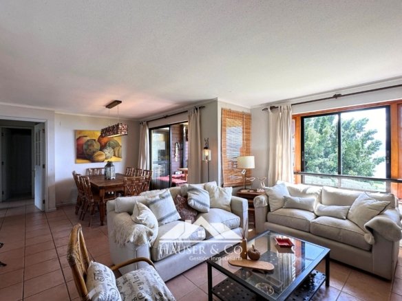 El departamento se encuentra en el tercer piso y cuenta con 100 m2 útiles más una cómoda terraza con vista al lago, piscinas y jardín.
